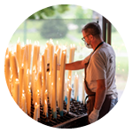 Les "feutiers" du Sanctuaire déposeront pour vous un ou plusieurs grands cierges personnalisés dans les chapelles de lumière (15 kg, 35 kg, 70 kg).